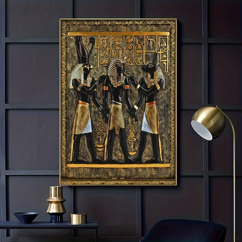 Elevate your space with this stunning set of 3 black and gold ancient Egyptian art prints featuring a pharaoh and his maidens. The rich color palette and timeless design bring a luxurious and sophisticated look to any room. Perfect for living rooms, bedrooms, offices, or gallery walls, these canvas paintings create a bold and elegant focal point. High-quality printing ensures vivid detail, durability, and long-lasting beauty. Ideal for modern, contemporary, or luxury-inspired interiors. Lightweight and easy to display, this artwork set makes a unique gift for art lovers or history enthusiasts. Transform your décor with this striking and culturally inspired wall art collection.