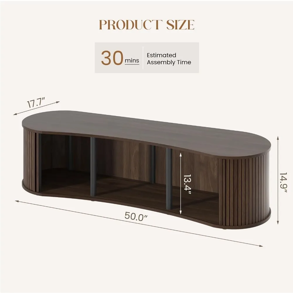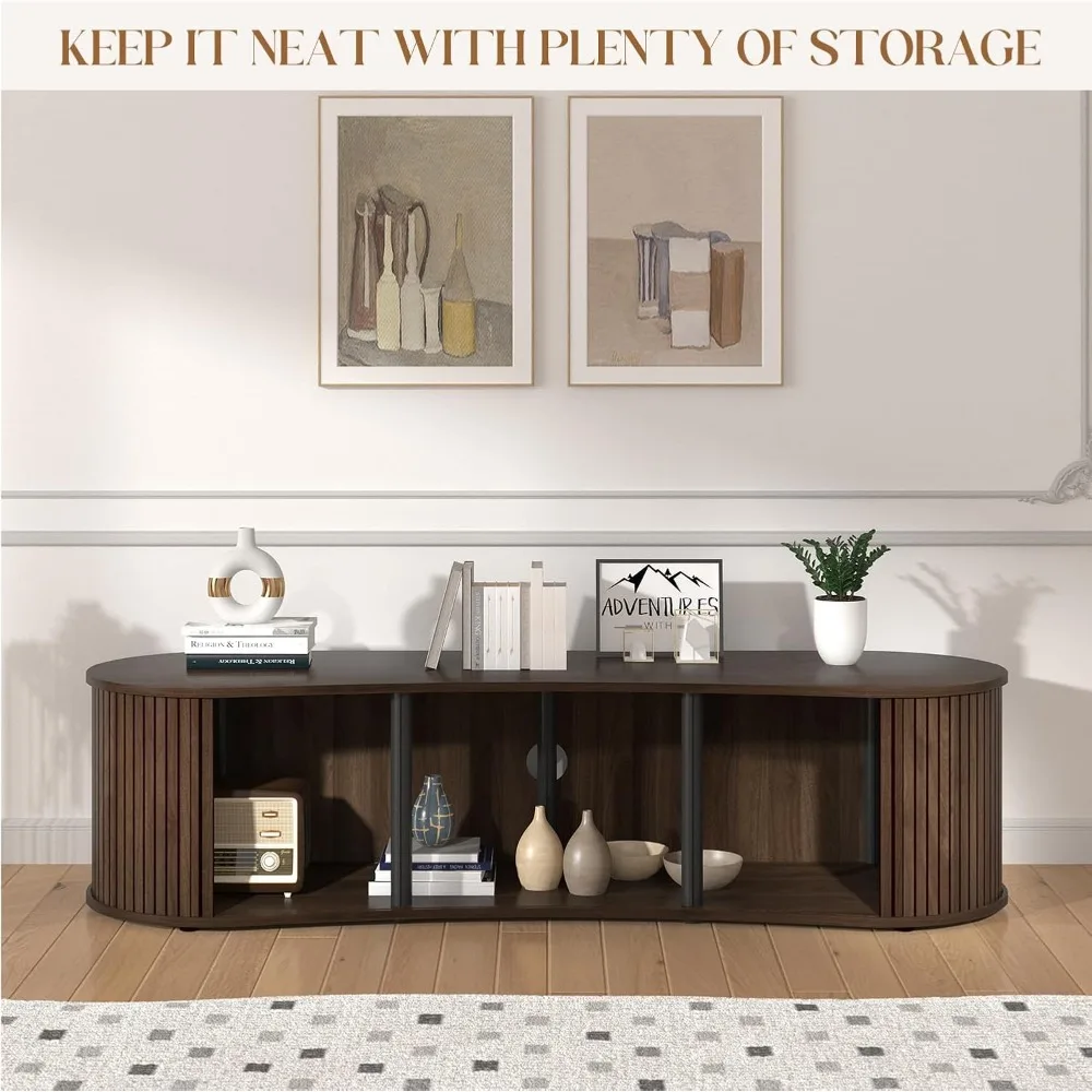 Upgrade your living room with this 59″ fluted TV stand featuring a sliding tambour door for sleek, mid-century modern style. Designed with spacious storage cabinets, it keeps media devices, accessories, and décor organized while maintaining a clean and contemporary look. Durable construction ensures long-lasting use, and the elegant fluted detailing adds a sophisticated design element. Perfect for TVs of various sizes, this media console blends style, functionality, and modern aesthetics. Transform your entertainment area with this practical and stylish TV stand for a polished living room setup.